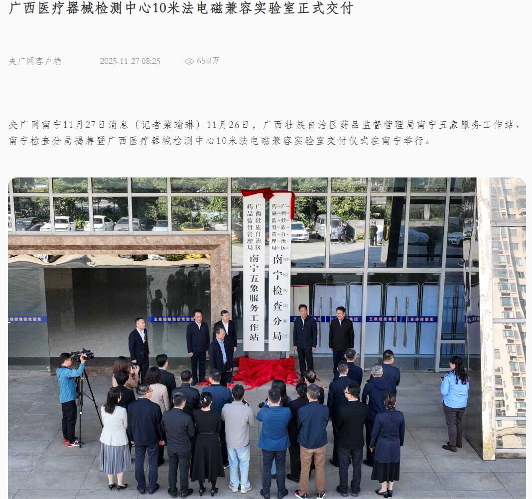 央广网:广西医疗器械检测中心10米法电磁兼容实验室正式交付